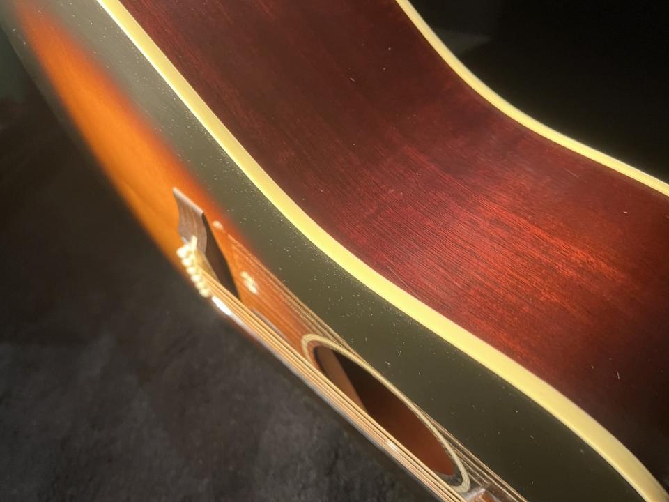 1942~1945年にしか存在しないヘッドのBanner&スクリプトロゴ。レクタングラーブリッジ&ロングサドル。オープンバックの3連ペグとヴィンテージ感満載!更にサーマリーエイジド加工されたアディロンダックレッドスプルース をトップ材に材用することによって弾き込まれたヴィンテージサウンドに肉薄する勢いで、今後の成長が非常に楽しみなモデルに仕上がっています。