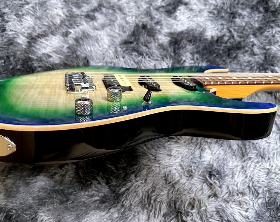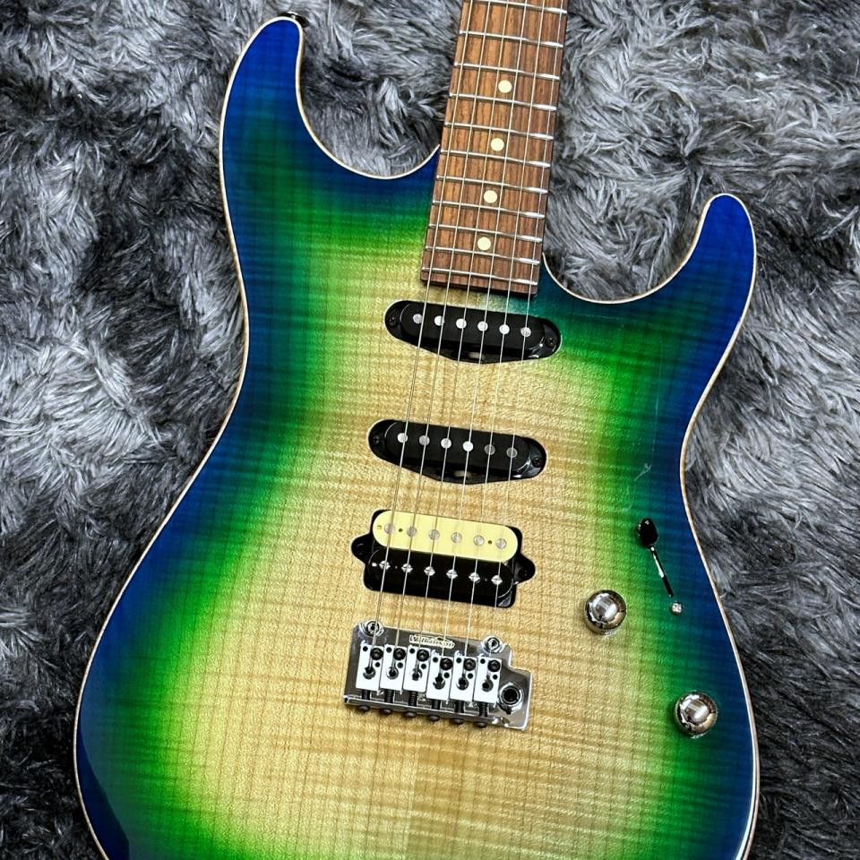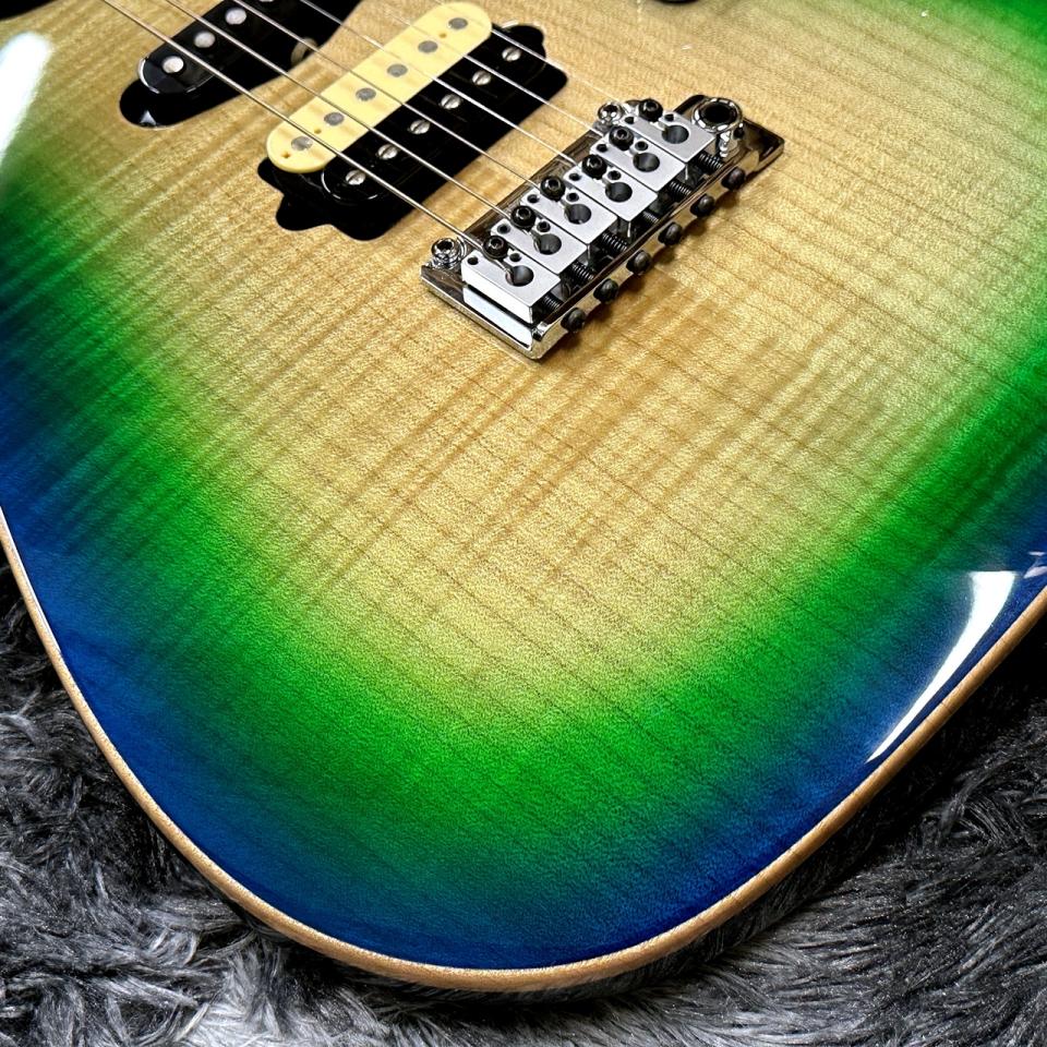 美しい杢目を余すことなく堪能できる、ピックアップをボディにダイレクトマウントさせた「リア・ルート」仕様。11 種類のカラーバリエーションと 3 種類のピックアップ・レイアウト、指板材には Indian Rosewood、トレモロ・ブリッジにはロック機構を備えた Wilkinson WVS 130 を採用した、「ありそうでなかった」組み合わせを持つ特別感のあるモデルです。