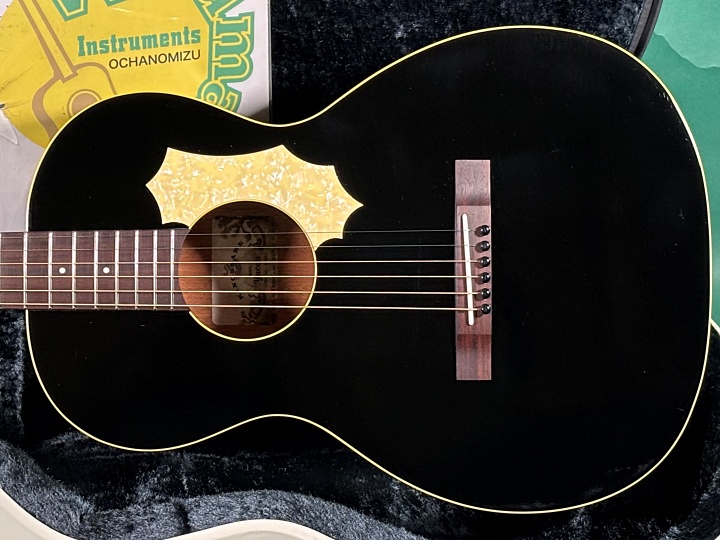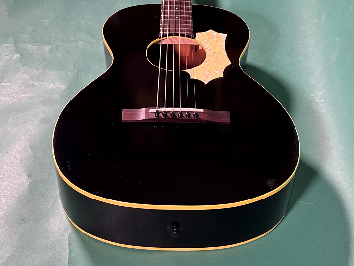 Bluesに特化したモデルコンセプトに基づき、スモールボディラダー・ブレイシングを採用し、深胴のマホガニー・13フレットジョイントもサウンドの要となっています。小ぶりながらもサウンドの太さとサスティーン、そして濃厚なミドル感を持ち、ブルースの表現に最適なサウンドキャラクターを備えています。さらに、音のパンチ力、ミッドレンジの強さ、ローエンドのタイトさ、ハイエンドの太さを追求するため、ボディサイズをあえて小さめのシングルOサイズとし、ローがブーミーにならず、タイトで輪郭あるトーンが特徴です。