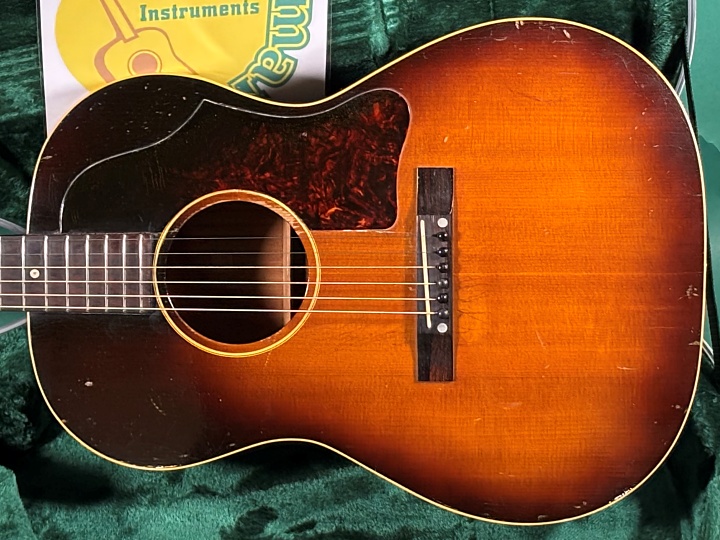 比較的お求めやすい価格でいて、ギブソンビンテージらしい個性的な味が楽しめる人気モデルで、特にこのラージガードの50年代後期モデルは、その荒っぽい雑な感じがカッコ良いですね。