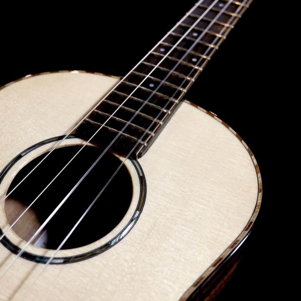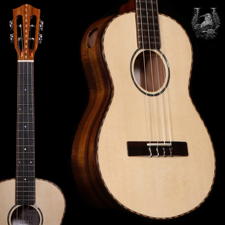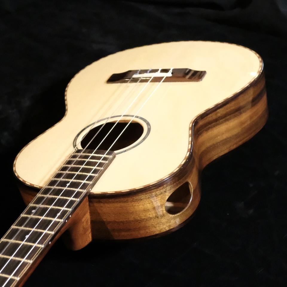 古林達郎氏製作 KOU ukulele、スイスムーンスプルース・トップ、コアサイドバックのバリトンウクレレが入荷しました。
