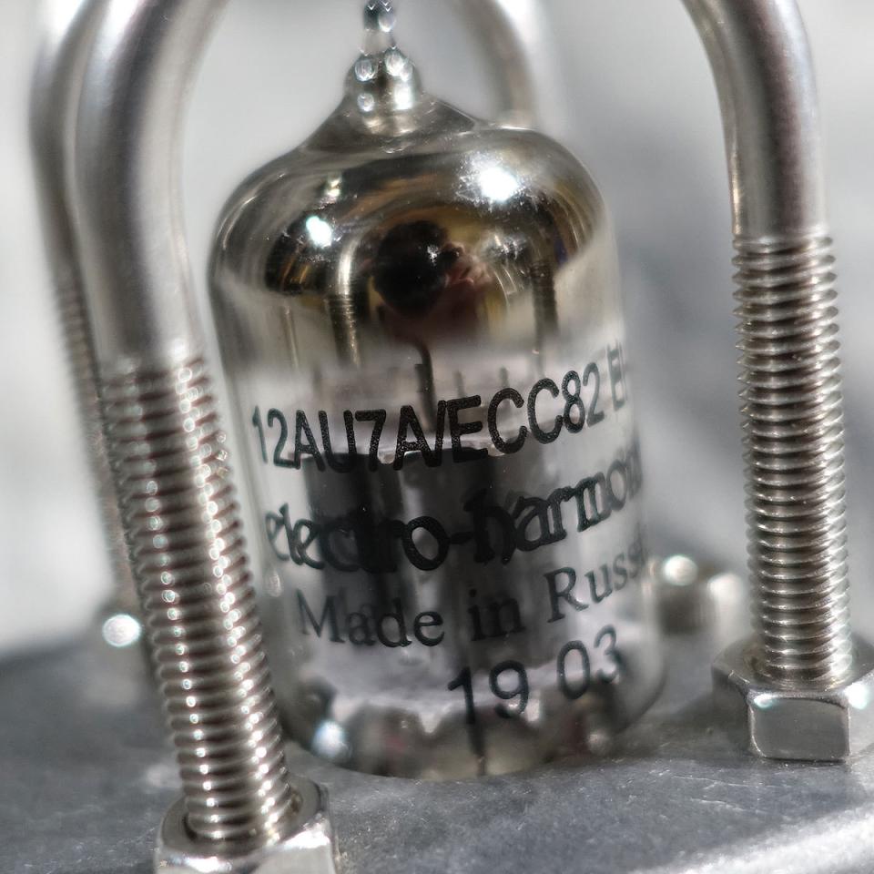 ギターからの出力信号のノイズや減衰を抑制するバッファーにElectro-Harmonix社製の真空管(12AU7 EH)を搭載。