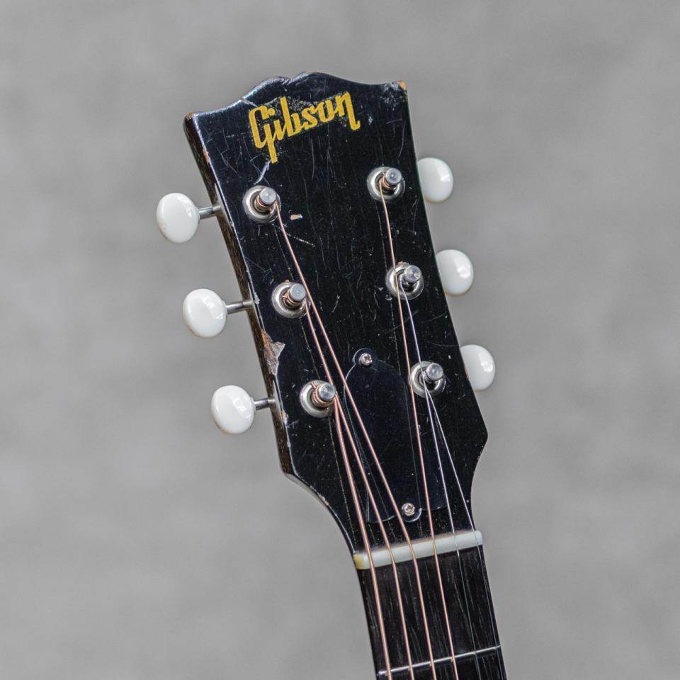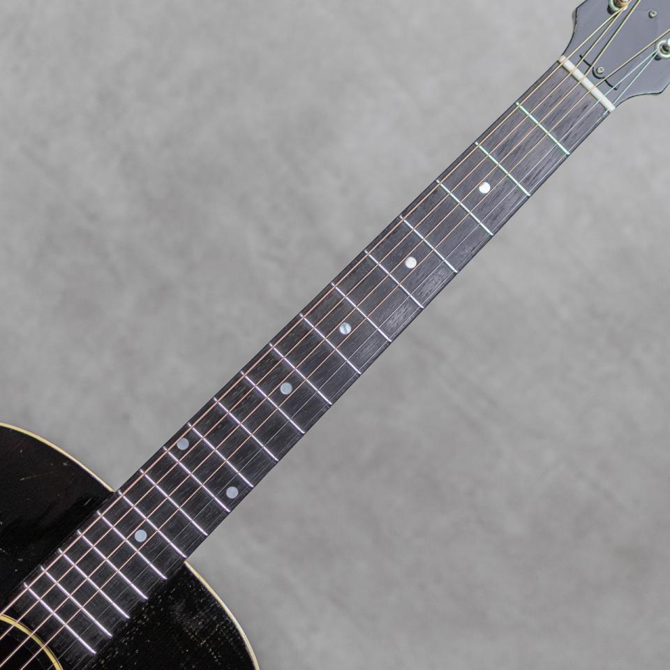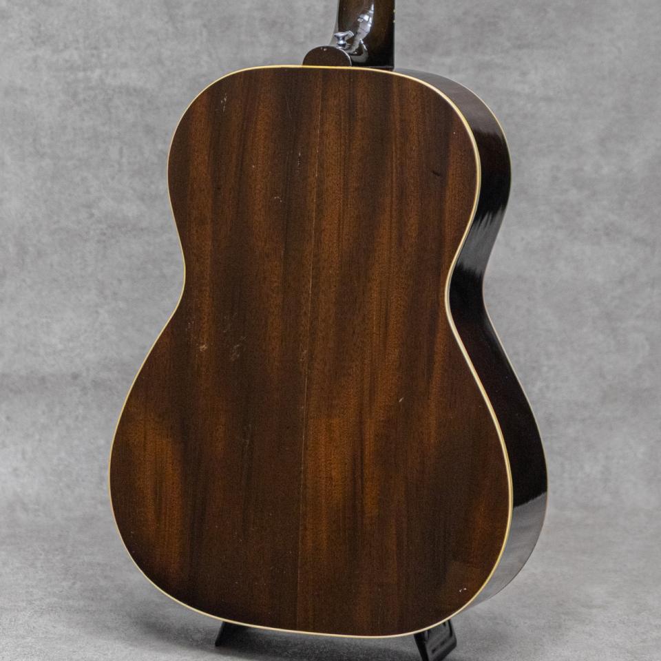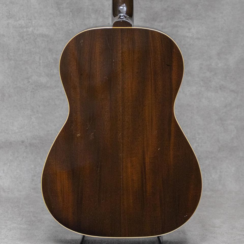 ブックマークする 値下げ通知に登録スモールギブソンの定番人気モデルLGシリーズ。1942年からラインナップされ、1970年代の中後期まで長きに渡り人気を博したシリーズで、ラダーブレイシングの”LG-1”、Xブレイシングの”LG-2(B-25)”、Xブレイシングナチュラルフィニッシュの”LG-3”、そして1958年に追加されたマホガニートップの”LG-0"と幅広い層にアプローチされたスモールモデルです。本器は、ラダーブレイスを持つスモールガードの”LG-1”。渋く濃いサンバーストが雰囲気満点な1953年製Vintage品。スプルーストップ、マホガニーサイド&バック、マホガニーネック、ハカランダ指板&レクタングルブリッジ、シングルリングロゼッタ、べっ甲柄スモールガード、ラダーブレイシング。ペグは近年の3連シングルラインクルーソンデラックスへ交換されています。とてもよく乾いたタイトかつレンジ感のあるご機嫌サウンド。低音感や音圧はラダーブレイスング並ですが、音像の明瞭感やレスポンスがとても優秀な1本で、しっかりと弾かれてきたビンテージならではのサウンドレスポンスを存分にお楽しみいただけます。ピッキングウェアや使用に伴う打痕すらも良い顔付きを持つ本器。経年によるウェザーチェックや入って然りな打痕や弾き傷は、好感を覚えるビンテージルッキン。ネックまわりもとても良好で弾きやすいアクションをしっかりと保っています。ネックヒール部にストラップピン増設。見てよし弾いてよしのFine Vintageギア。是非愛でて弾いてお楽しみください。オリジナルチップボードケース付属