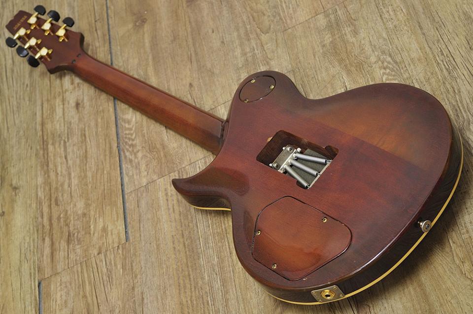 メイプルトップ/マホガニーバック構造とセットネックの組み合わせによる豊かな中低域、滑らかなサステインは、当時の日本製ギターが「世界品質」と呼ばれる礎を築いたモデルのひとつです。