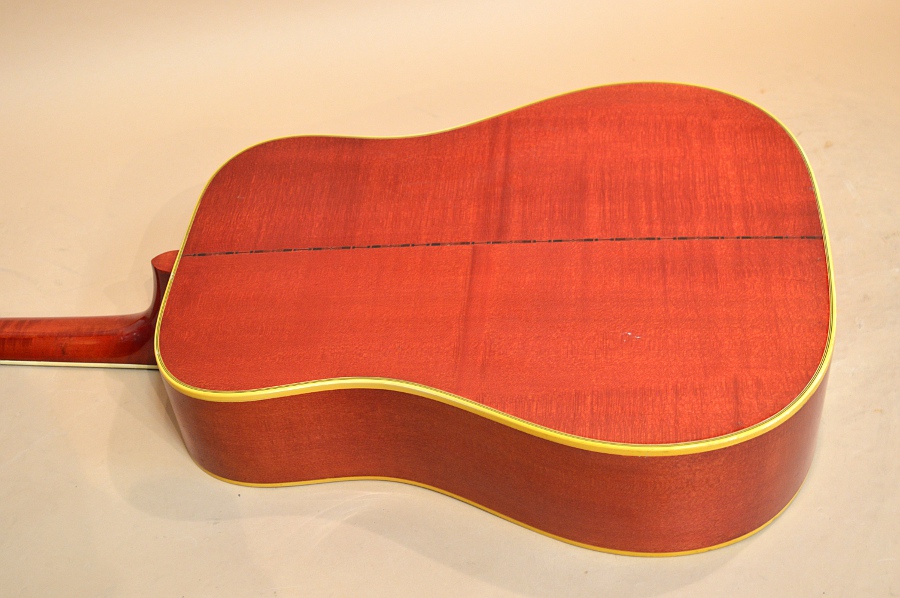 サウンドはメイプルらしい粒立ちの良さとゴンゴンとくる低音がブレンドされたダヴらしいサウンド!ゴンゴンと硬質で重みのある低音に、メイプルならではのソリッドな中域、艶やかな高音などが混然一体となり、J-45やハミングバードなどのマホ・ボディーとはまた一味違うギブソン・サウンドを響かせます。70年代ギブソンはダブルXブレーシング構造になる為、一般的には鳴りが悪いと思われがちですが、決してそんな事はありません。ローもしっかり出ていて、サウンドだけ聞いているとダブルXブレーシングの影響はほとんど感じず、ゴンゴンと豪快なサウンドを響かせます。サウンドは好みがありますので一概には言えませんが、、60年代T.O.M.期のダヴよりも全体的なボリュームもあり、パンチのあるサウンドですので、70年代ギブソンを食わず嫌いだった方には是非一度お試し頂きたい、メイプルらしくもオールマイティーに使えるサウンドかと思います!