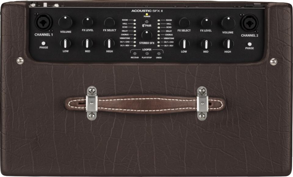 Acoustic SFX IIアンプは、アコースティックギターとボーカルに高品位のパフォーマンスを提供します。このパワフルでポータブルなシステムには、楽器とマイク両用に設計された2つのチャンネルを装備し、それぞれのチャンネルにはスタジオ品質のエフェクトが搭載されています。フェンダー独自のStereo Field Expansionテクノロジーにより、立体的なサウンドイメージングを実現します。Bluetoothワイヤレスオーディオストリーミングと60秒ルーパーを搭載しているので、ソロショーにも最適です
