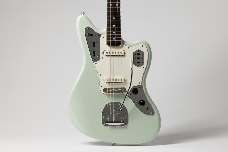 羊文学の塩塚モエカが長年愛用しているAmerican Vintage ’65 Jaguarをベースに、彼女のこだわりを再現したシグネイチャーモデルが誕生しました。エイジングされたソニックブルーをイメージしたオリジナルカラーに加え、水張りデカールを採用することで、ヴィンテージギターのような風格を演出しています。