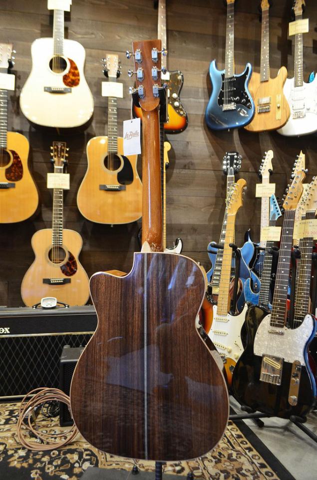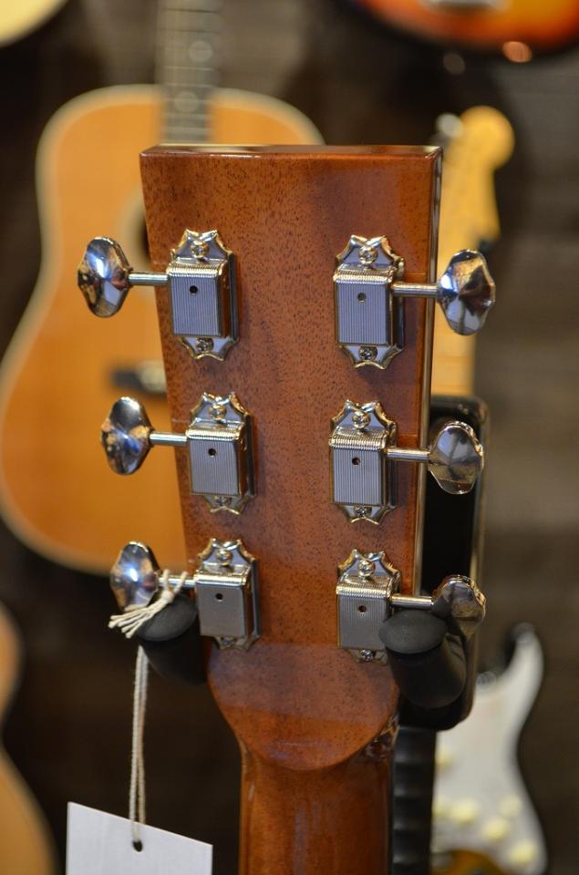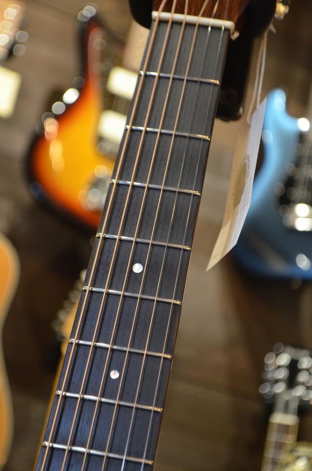 表面板にはシダー単板が用いられ、スキャロップドブレイシングを採用することで、フィンガースタイルによる繊細なピッキングにしっかり反応できるよう設計しています。コンパクトなボディサイズからは想像できない音量と、明るい中にも芯のあるサウンドが特徴です。