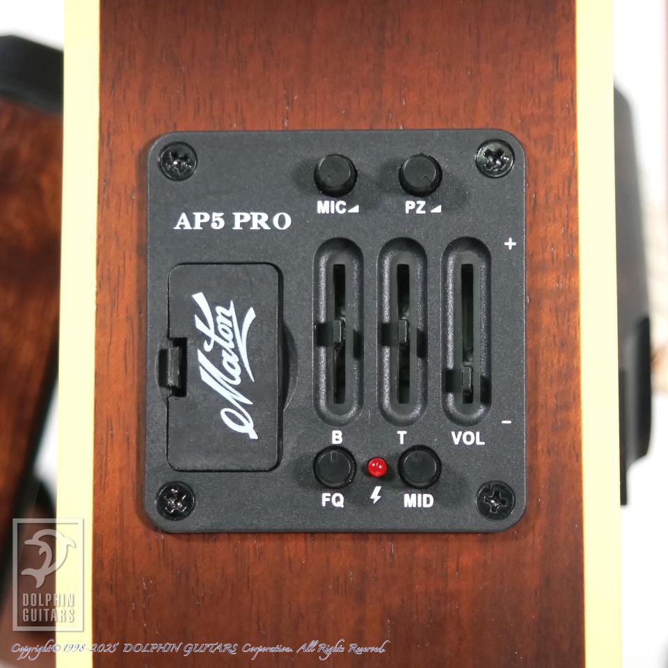 メイトンの魅力の一つでもあるピックアップシステムはメイトン社オリジナルのAP5-Proは特殊構造のアンダーサドルPUとコンデンサーMicをMixし、リアルなアコースティックサウンドをアウトプットできます。サイズはミニであってもラージボディにも引けをとらないこの大迫力のサウンドに、初めて弾かれる方は驚きを隠せないでしょう。