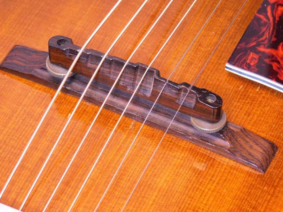 年代なりの演奏によるスレ/弾きキズなどは見られますが割れや割れのリペアは無く、70年以上前のギターとしては状態の良い1本。