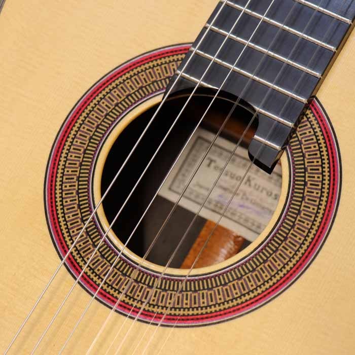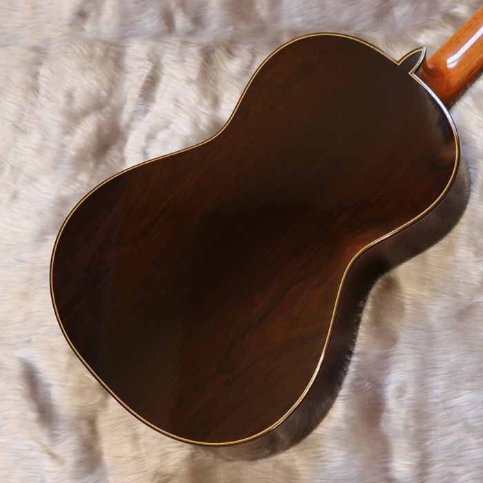 島村楽器限定、アヴェントゥーラ。横裏に工房材選定ハカランダ使用し、天神もこのギターに新たにデザイン。哲郎氏最高峰ギター。