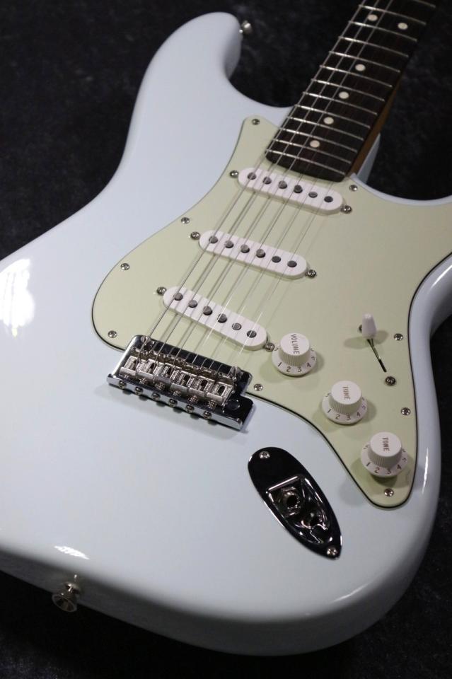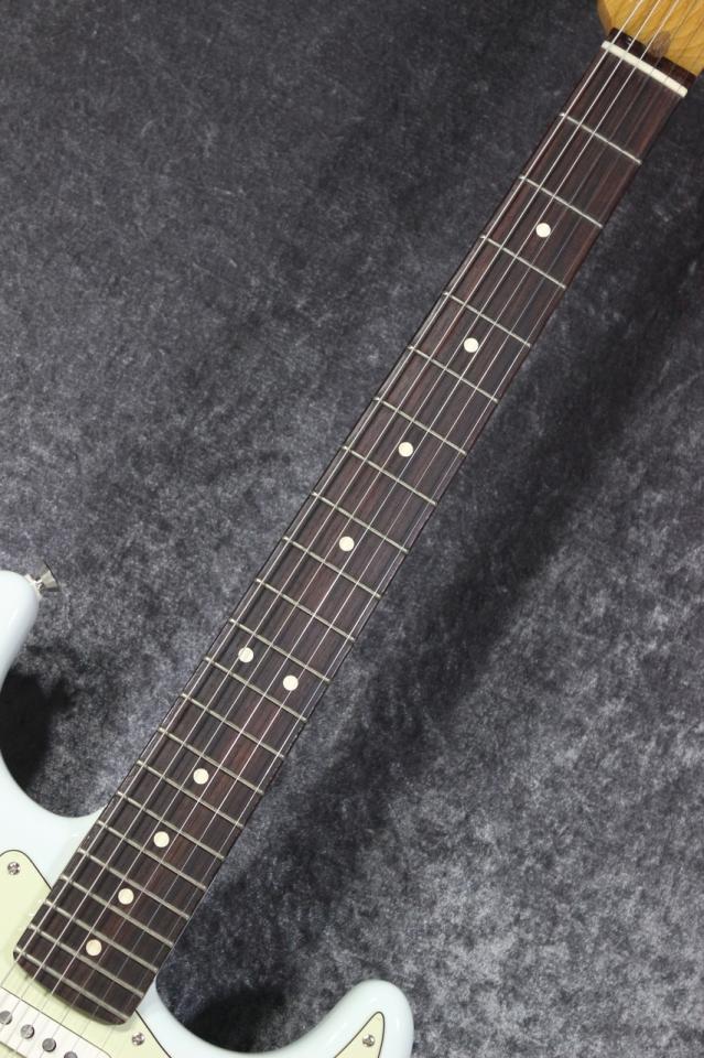 カラーにもカタログ外ながらビンテージストラトで定番の"Sonic Blue"を採用し、扱いやすさを向上させたモダン仕様ながらビンテージスタイルを持ったギターに仕上がっております。