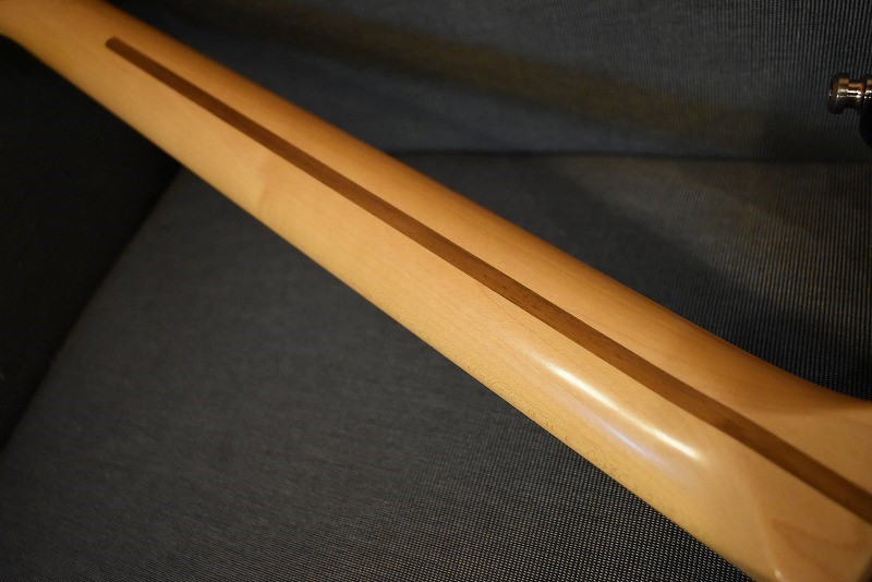 アルダーボディにメイプルネック、ロックペグに2点支持トレモロ、ローラーナット仕様です。