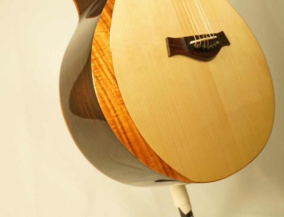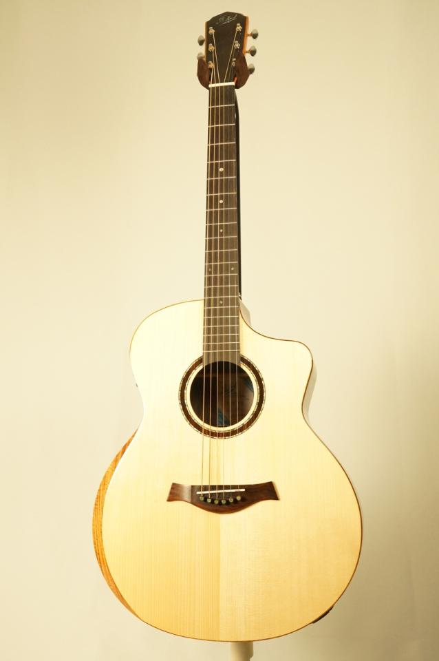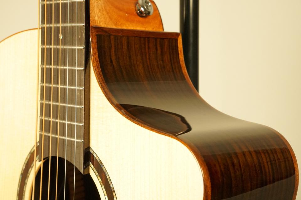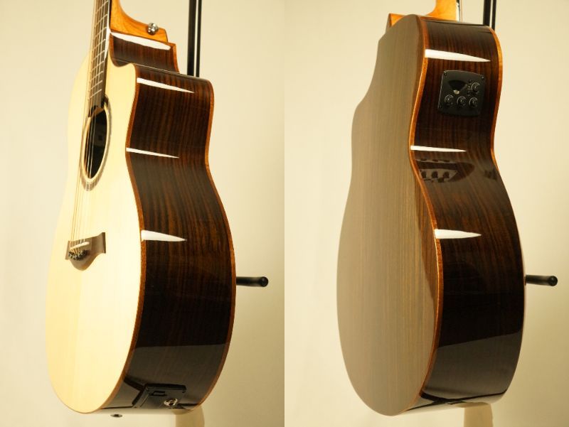 トップはスプルース単板、サイド&バックはインディアン・ローズウッドのベベルド・アームレストを施したカッタウェイボディ。