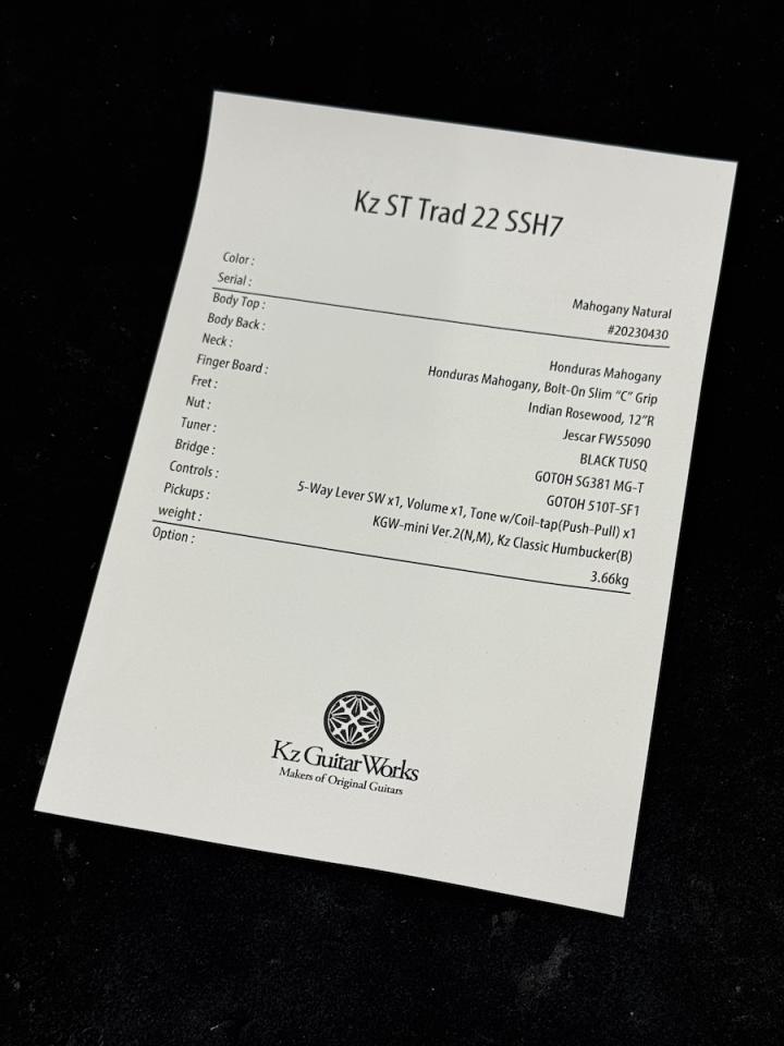 | 商品名 | Kz Guitar Works Kz ST Trad 22 SSH7 |