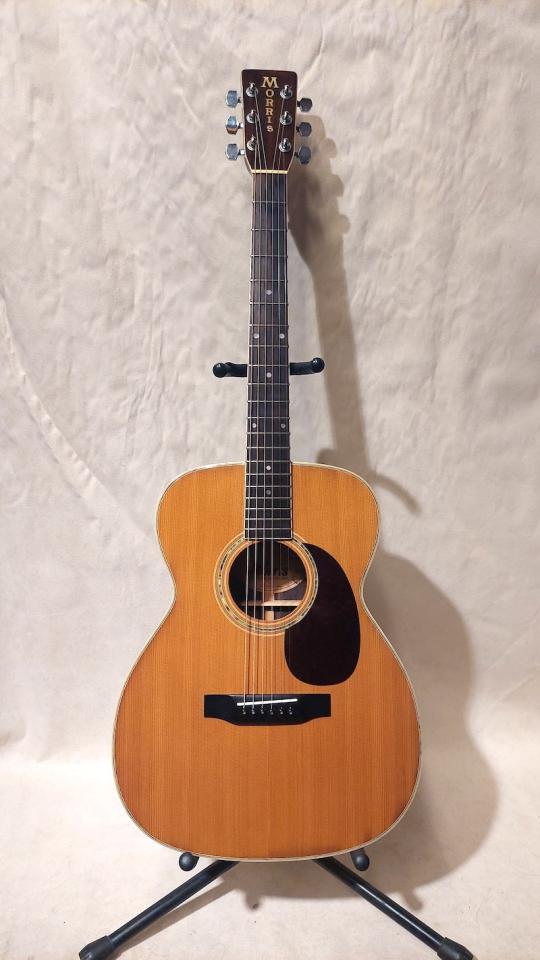 Morris(モーリス):モリダイラ楽器のアコースティックギターを主体とするブランドで1972年に誕生。「モーリス持てばスーパースターも夢じゃない」のCMでフォークブームを支え、「アリ溝」ネックジョイントやダブルXブレーシングなど、独自技術により「モーリスの音」を追求。ドレッドノート(M),00(F),カッタウエイの000(R),ジャンボ(J),フィンガーピッキング(S)などのタイプがある。(Morris/モーリスのキーワード検索結果はこちら)