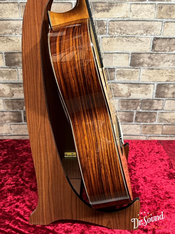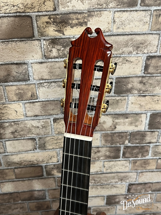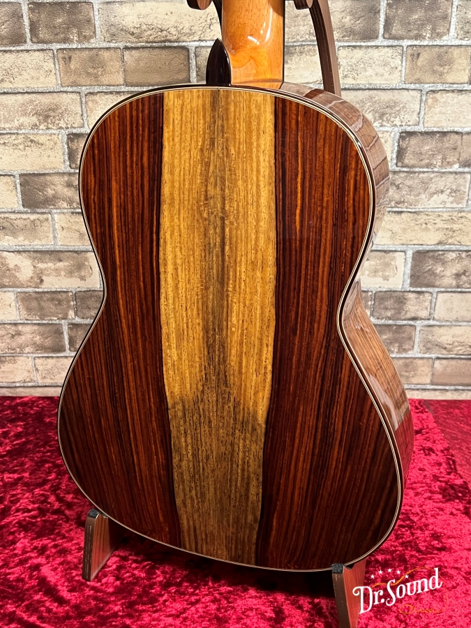 ホアン・エルナンデス最上位機種のMaestro、裏横の木材にココボロを使用しており、稀少性もさることながらローズウッドとは異なった硬質な音色をお楽しみ頂く事が出来ます。