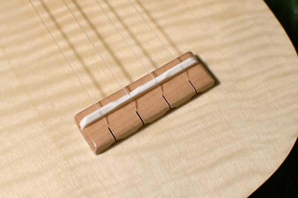 ネックや指版、ブリッジにはメイプルが用いられ、統一感のある外観に仕上げられています。