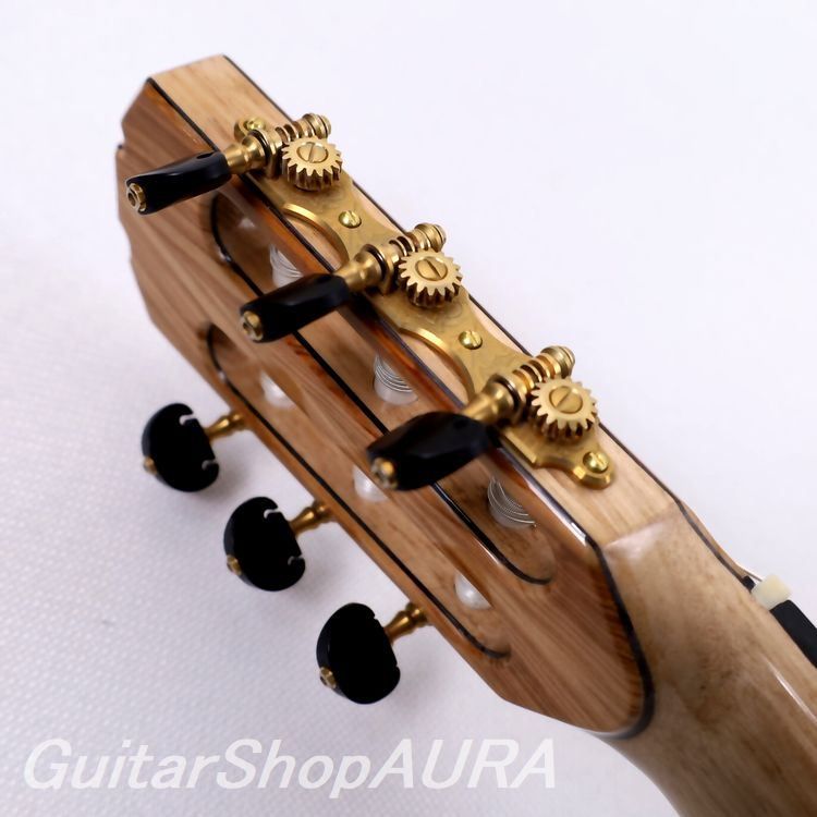 更に再塗装、塗り重ね、フレットや糸巻きの調整や交換等の経年劣化に対しての補修、修理まで専門家の知識と技で、あらゆる問題点に関してのご相談、見積もり、リペアまで責任を持って承ります。担当制で木曜・土曜・日曜に各製作家がギターショップアウラに常駐しております。