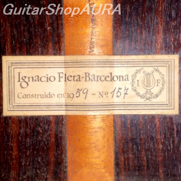 生まれはスペイン、アラゴン州テルエル(Teruel)県の村Huesa del Comun。アラゴン州が隣国フランスと近接する地域で中世からのお互いの文化的な交流が他の州よりも盛んで、現在も音楽や特に言語的な影響が色濃く残っており、アラゴン語にはスペイン語よりもフランス語に近い発音が多いことはフレタ1世のギターにおけるある種のフランス性(それゆえにフレタをスペインギターと認めないという声もあるほど)を語るうえで注目すべき点といえるでしょう。フレタ家はもともと家具製作など木工を生業とする家系で、イグナシオも幼少からそのような環境に馴染みがありました。13歳(一説には14歳)の頃に兄弟とともにバルセロナで楽器製作工房の徒弟となり、更に研鑽を積むためフランスでPhilippe Le Ducの弦楽器工房でチェロなどのヴァイオリン属の製作を学びます。その後フレタ兄弟共同でバルセロナに工房を設立し、ギターを含む弦楽器全般を製作するブランドとして第一次大戦前後でかなりの評判となりますが、1927年に工房は解散。イグナシオは自身の工房を設立し、彼の製作するチェロやヴァイオリンをはじめとする弦楽器は非常に好評でその分野でも名声は高まってゆきます。同時に1930年ごろからトーレスタイプのギターも製作していましたが(この時期バルセロナ派のギター製作家 Enrique Coll に指導を受けており、Collは名工Francisco Simplicio の弟子にあたります)、1955年に名手セゴビアの演奏に触れ、そのあまりの素晴らしさに感動し、以後はギター製作へと完全に転向することになります。フレタは巨匠の演奏から霊感をも受けたのか、その新モデルはトーレススタイルとは全く異なる発想によるものとなり、1957年に製作した最初のギターをセゴビアに献呈。すると彼はその音響にいたく感動し、自身のコンサートで使用したことで一気にフレタギターは世界的な名声を得ることになります。