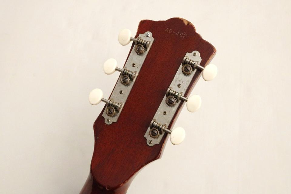 年式相応の傷や打痕、塗装の剥がれはございますが、年式相応と言えるかと思います。大きなところではネックを一度外して角度をつけなおすネックリセットがされており、その際に併せて指板の14フレット以上の下にシムを敷いて角度調整をする処理が施されています。また、ヘッドの上部に木部が露出する欠けがあり、ネック裏やトップ・サイド・バックの各淵に塗装剥がれが数か所、ブリッジピン穴の溝が弦により摩耗することで広がっています。しかしながら製造から60年経過していることを考慮すると木部割れやの大きな補修歴は無く演奏上大きな問題もないため状態良好と言えます。ネックは概ね真っ直ぐで6弦12フレット上約2.5mm、1弦12フレット上約2.0mm。サドルの残りは6弦下約1.5mm、1弦下約1.0mm。サドルに余裕はありませんがまだトラスロッドは余裕がありますので今後の弦高調整も可能。演奏性としては弾き易い一本です。年代からみて指板、ブリッジはブラジリアンローズウッドが使用されていると思われる希少な一本です。是非この機会にお手に取ってみてください!