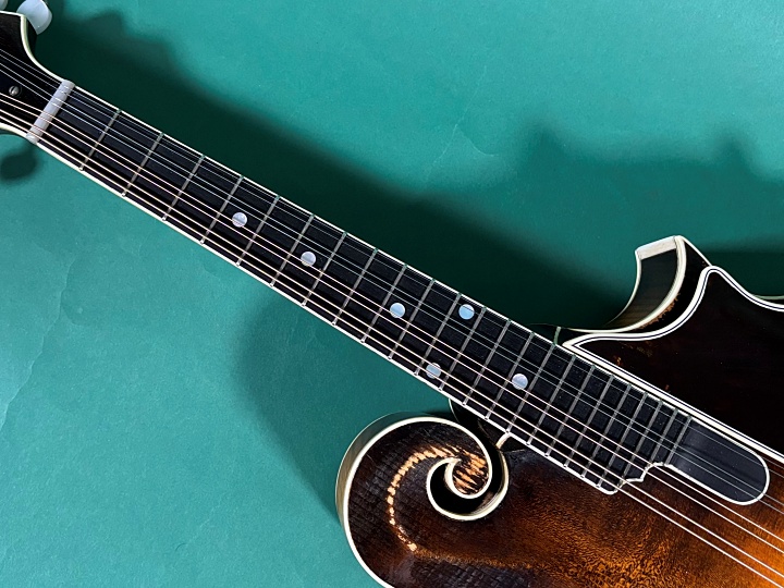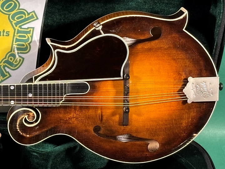 2009年製のFW-5が入荷しました。USEDではめったに入荷しない大変貴重な楽器です。国内のみならず海外で高く評価されるマスタールシアー上田洋一氏の手によるロイドロアースタイル・F-5マンドリン、受注生産のみで製作され、完成まで約1年位かかります。