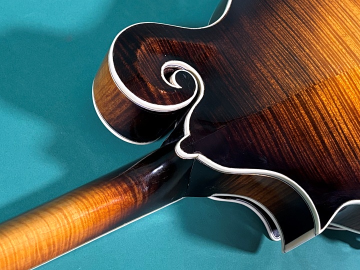 粒立ち、音抜けともに素晴らしく、質感の高い音色で奏でられます。特に高音弦のハイポジションでの伸びやかなサスティーン、カッティング時での中音域の抜けの良さは、マスターモデルへの製作家のこだわりが感じられます。野太いサウンド、ボリューム感たっぷりのマンドリンに仕上がっています。