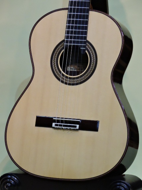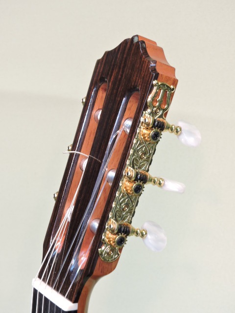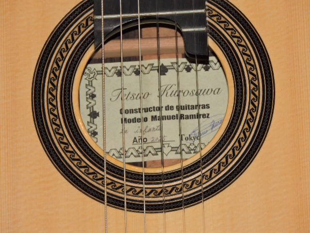 このインファンタ・モデルも若きセゴビアがデビューに際して手にした名器、M.ラミレスに準拠したボディーシェイプ&サイズ、ネック形状、ロゼッタデザインなどをコピーした作品で、哲郎氏のこの作品への思いが見事に結実してます。