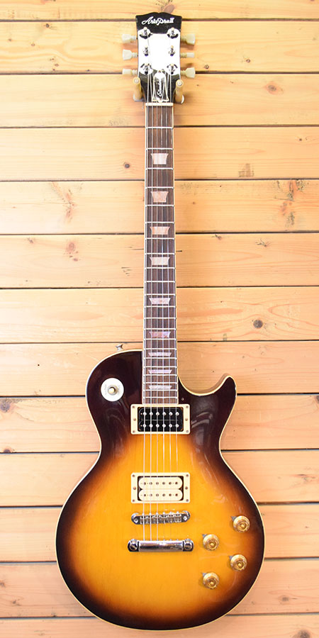 ブックマークする 値下げ通知に登録1980年製。伝説の「パワードシリーズ」の500グレード!当時50,000円定価ながらUSAディマジオピックアップを搭載するという採算度外視の狂ったシリーズ!本機はメイプルネック・3Pメイプルトップ+マホガニーボディーを採用した70s仕様。ペグにはオリジナルの2コブクルーソン風を採用。ブライトで抜けの良いレスポールサウンドです。