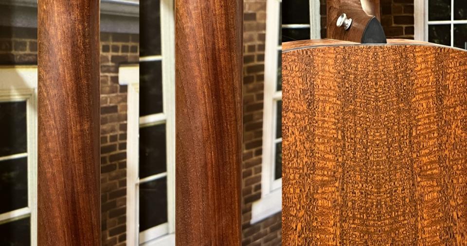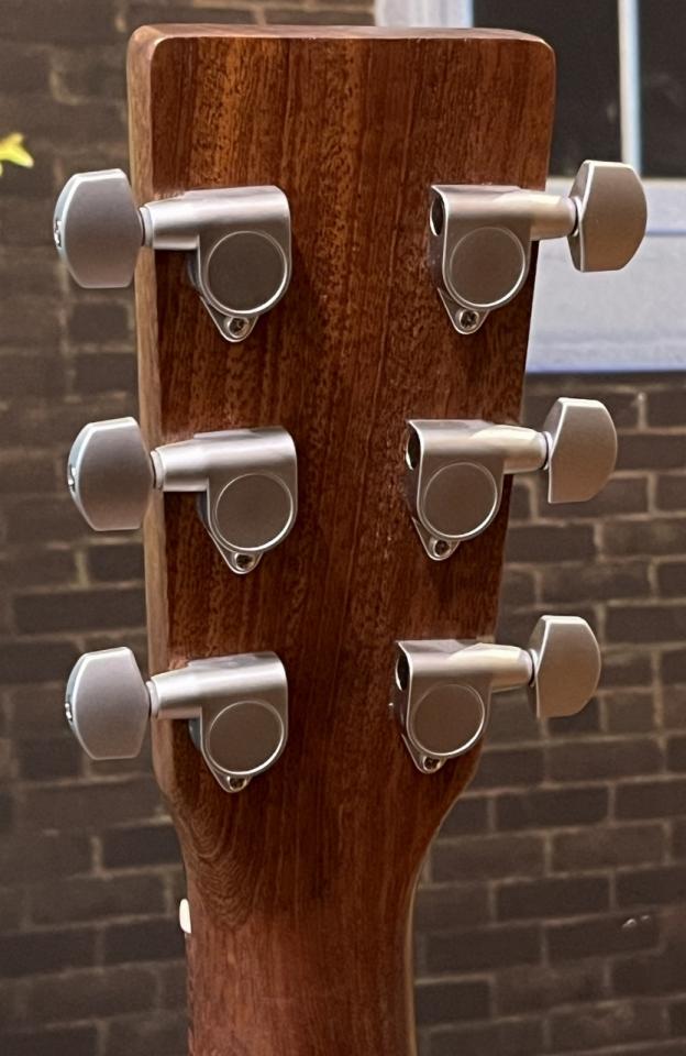 ボディトップにはスプルース単板材を使用し、サイドとバックにはマホガニー柄のハイプレッシャー・ラミネイト材を用いたドレッドノートサイズのモデル。