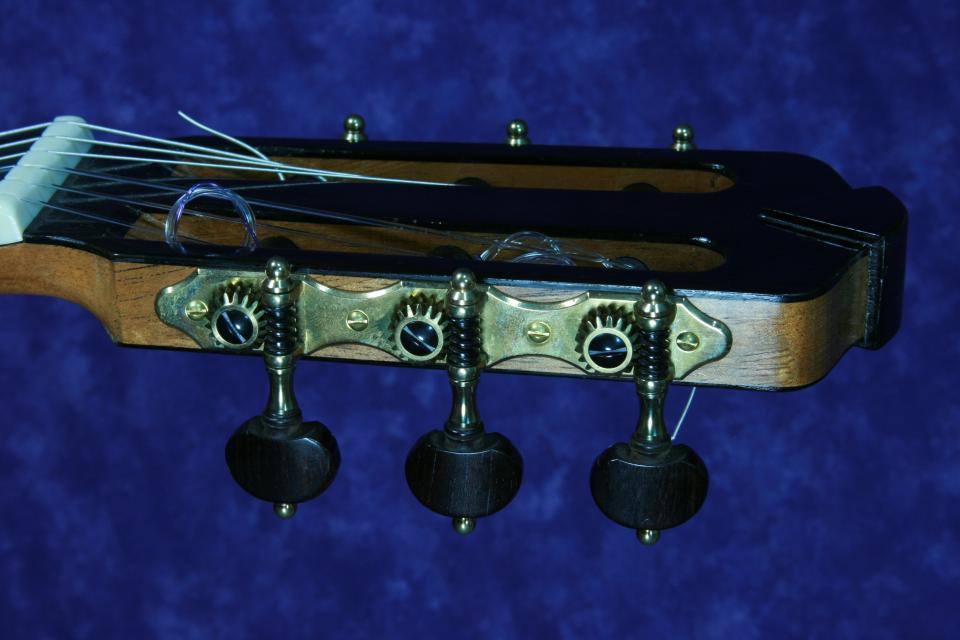 ブリッジとヘッドの飾り板は真っ黒なのでエボニーだと思います。