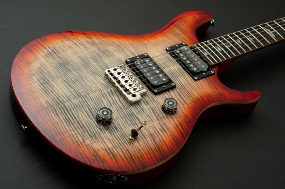 ツアーアーティストやライブの多いミュージシャンなどから愛用されているSE Custom 24は、マホガニーバックにメイプルトップのボディ、Wide Thinカーブのメイプルネックにローズウッド指板、バード・インレイを合わせPRSデザインのトレモロ・ブリッジを装備。