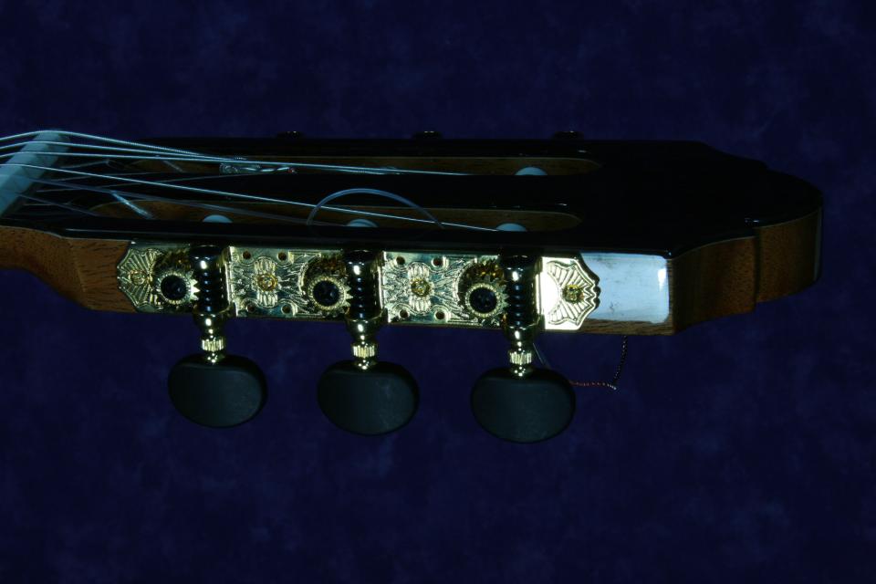 ネック:温度・湿度が変化しても狂いにくいマホガニーです。そしてネックとボディーのジョイントは強固なスペイン式の伝統的な一本棹方式です。