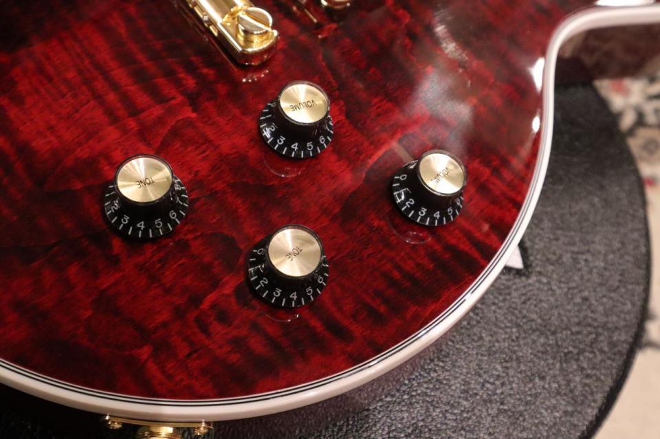 その他の木材はLes Paul Standardと同じ、メイプルトップ、マホガニーバック、マホガニーネックとなります。ただしトップ材は3Aグレードのフィギュアドメイプルです。