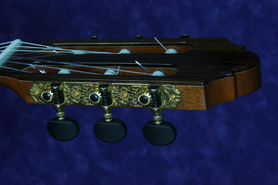 ネック:温度・湿度が変化しても狂いにくいマホガニーです。そしてネックとボディーのジョイントは強固なスペイン式の伝統的な一本棹方式です。