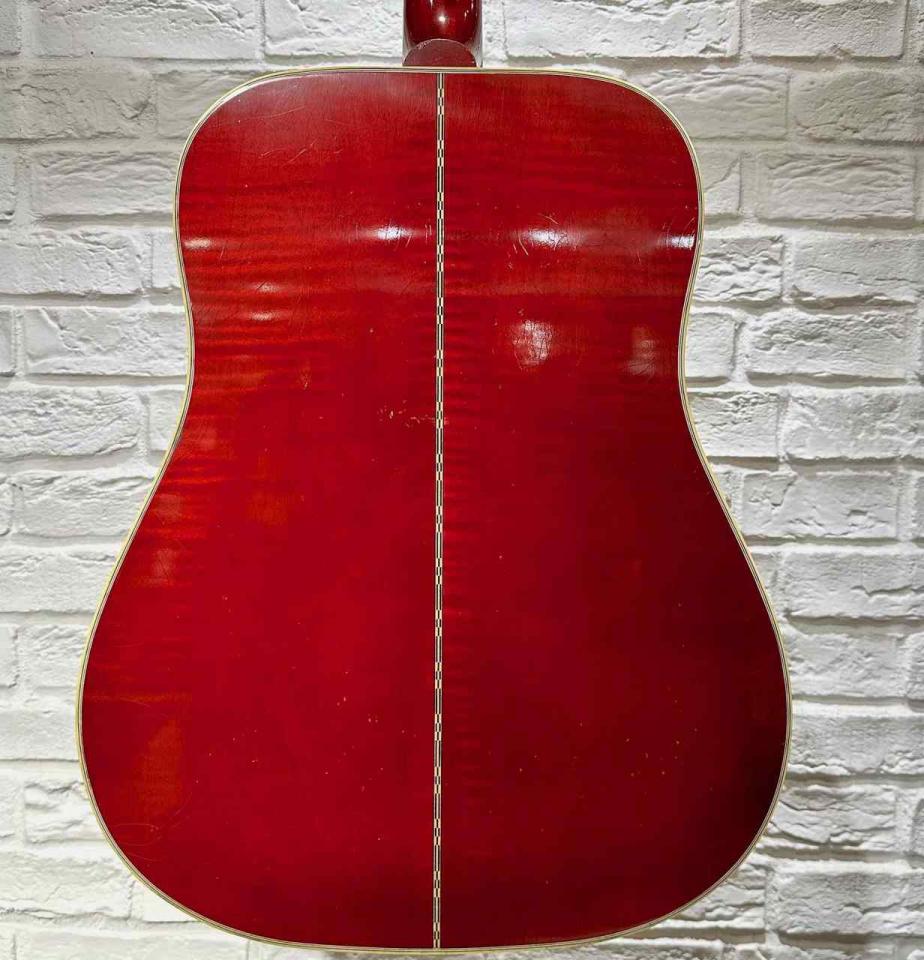 サイド&バックの鮮やかなシースルーのチェリーカラーはメイプルの美しい杢目が浮かび上がり、その美しさに見惚れてしまいます。