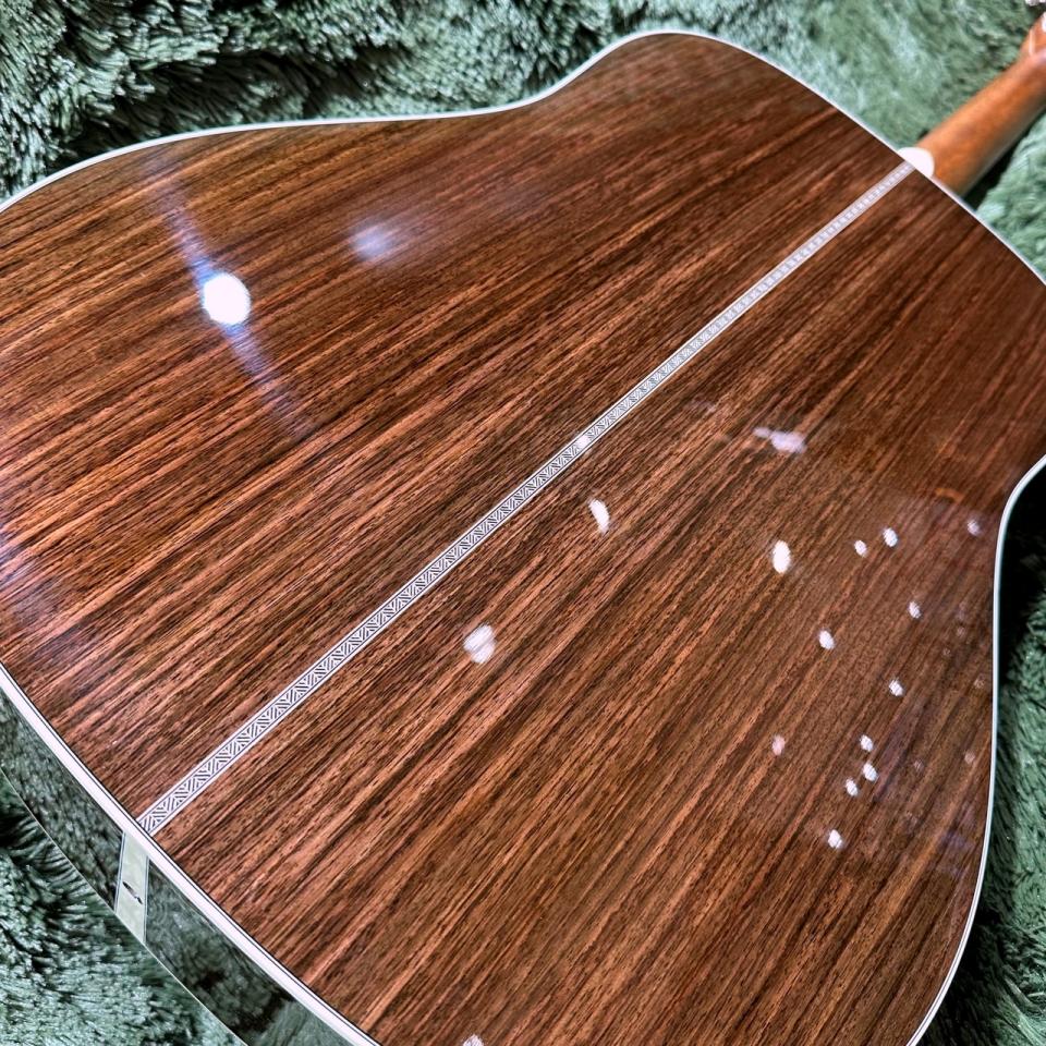 ナット幅は現行D-28の44.5mmよりも僅かに狭い43.7mmを採用。ネックシェイプの滑らかさもあいまって、