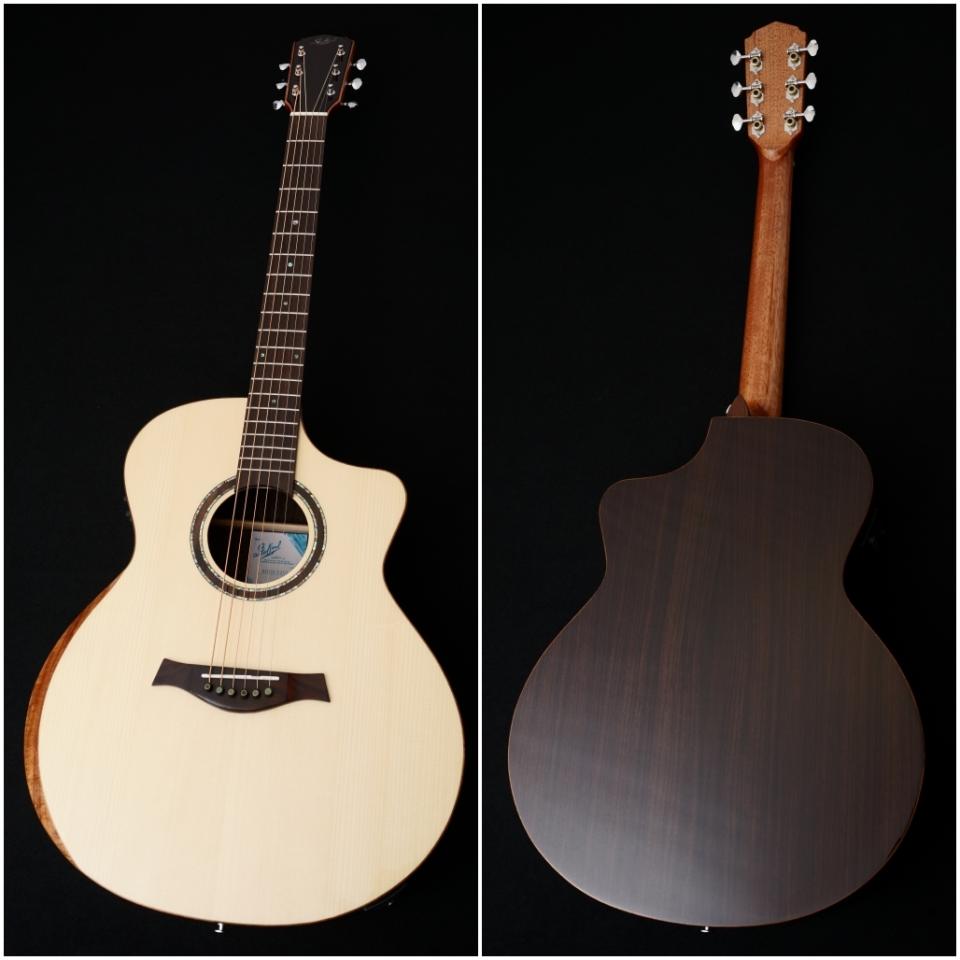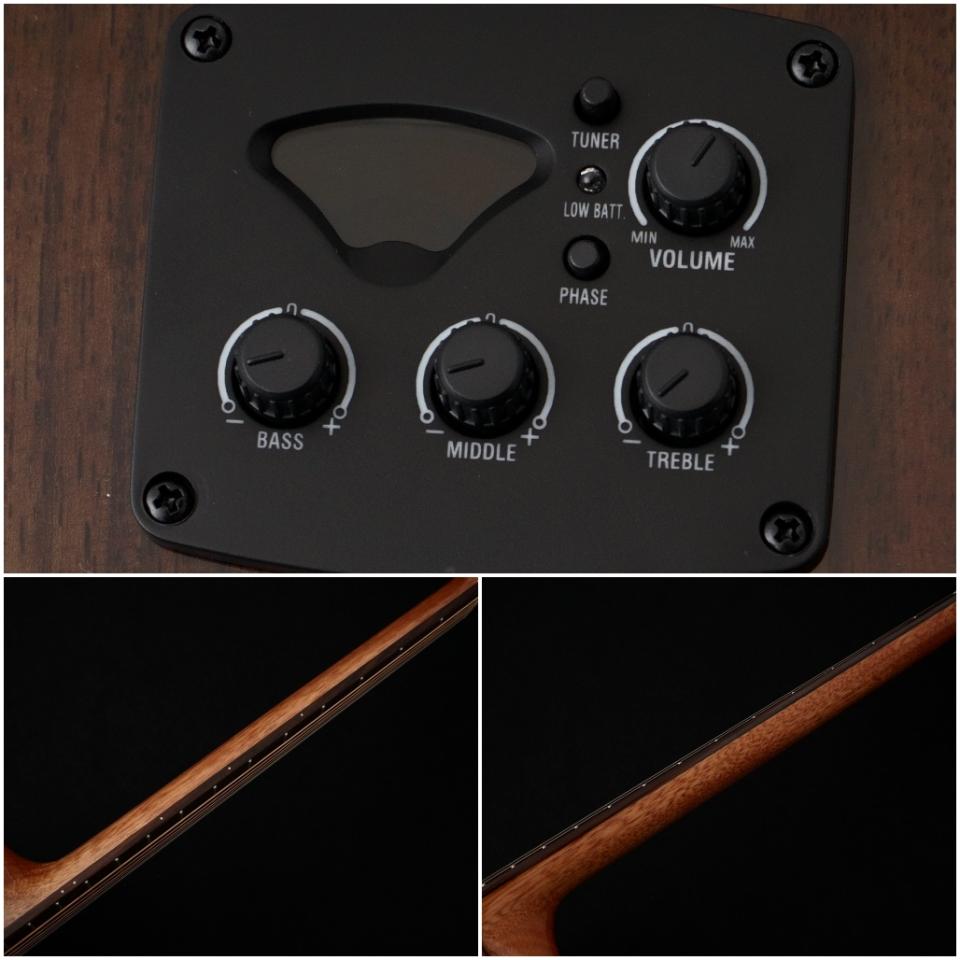 カッタウェイボディ&オリジナルPUを備えたエレアコ仕様で、初めての1本からステージユースまで対応可能です。