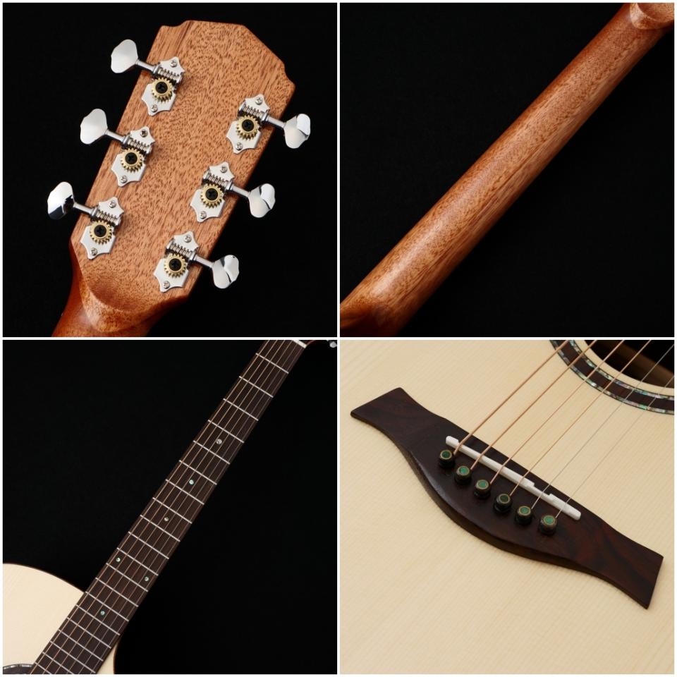 トップにはスプルース単板を使用しサイド&バックにはローズウッドと、アコギの中では非常にオーソドックスな材の組み合わせとなっております。