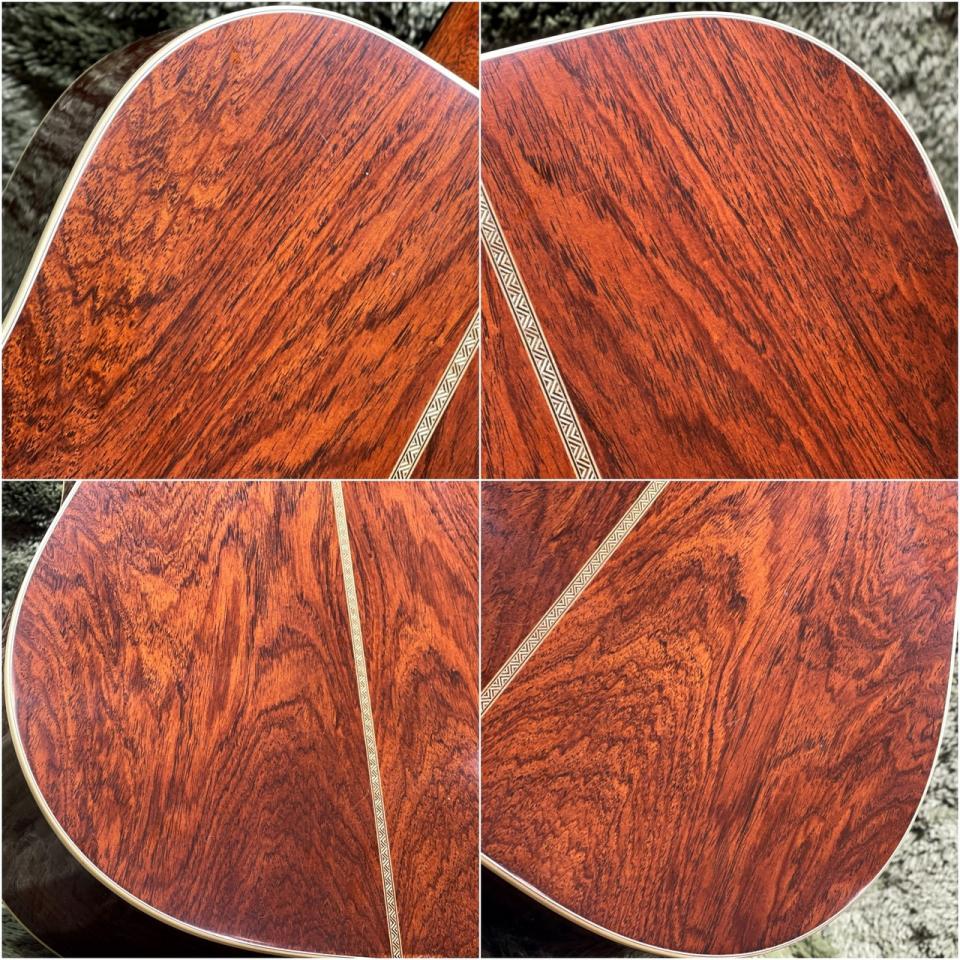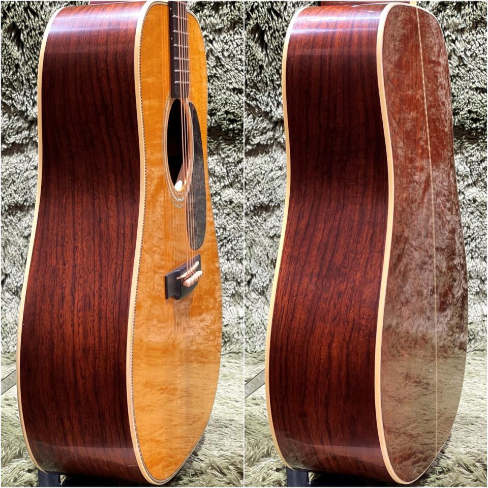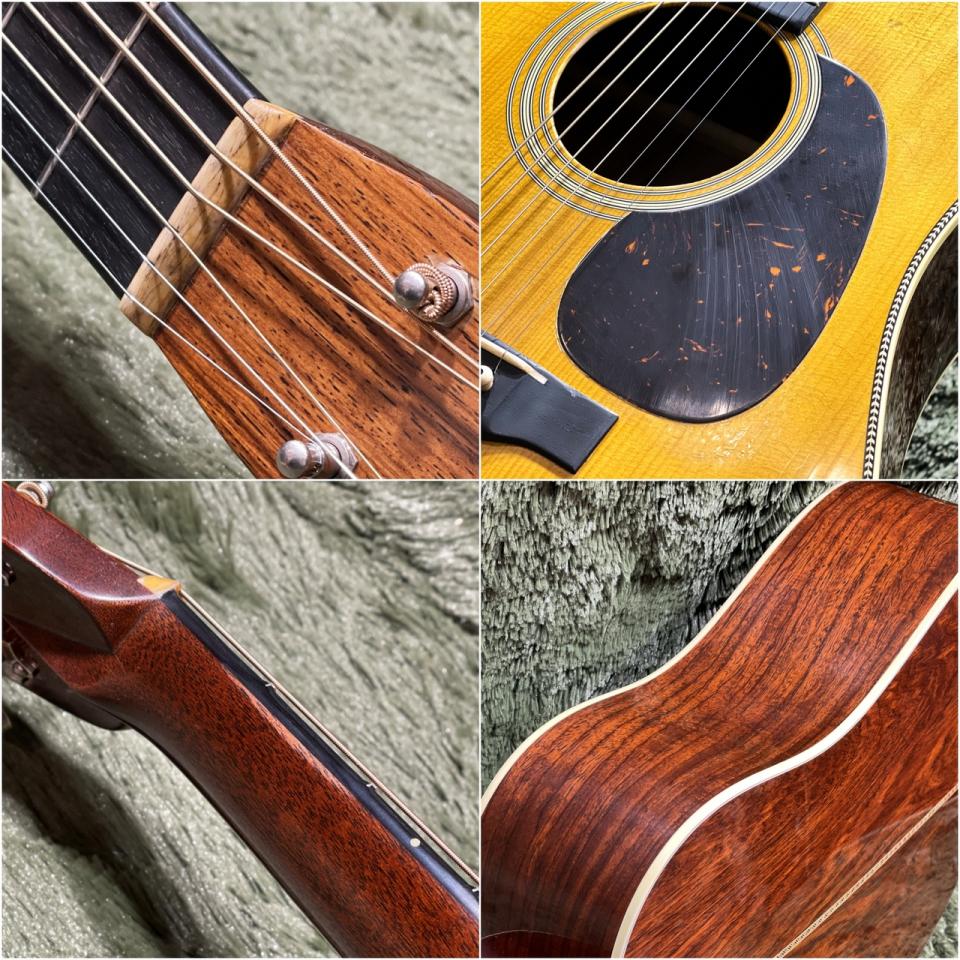 1937年製D-28を細部まで再現したオーセンティックモデル、経年変化による木材と塗装の変化や、傷、打痕、クラック、パーツのくすみを含むエイジド加工、本機はエキゾチックで圧倒的な杢の入ったお薦めの個体です。