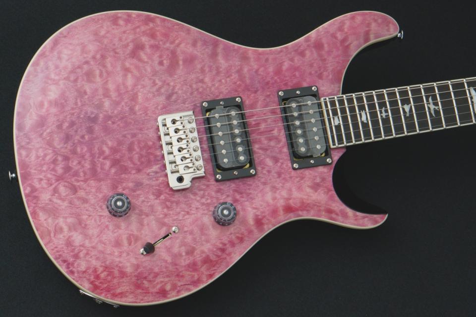本機は、PRSのフラッグシップモデル“Custom 24”のデザインを継承しながら、手に取りやすい価格帯で展開されるSEシリーズの中でも、ひと際華やかな存在感を放つ1本です。