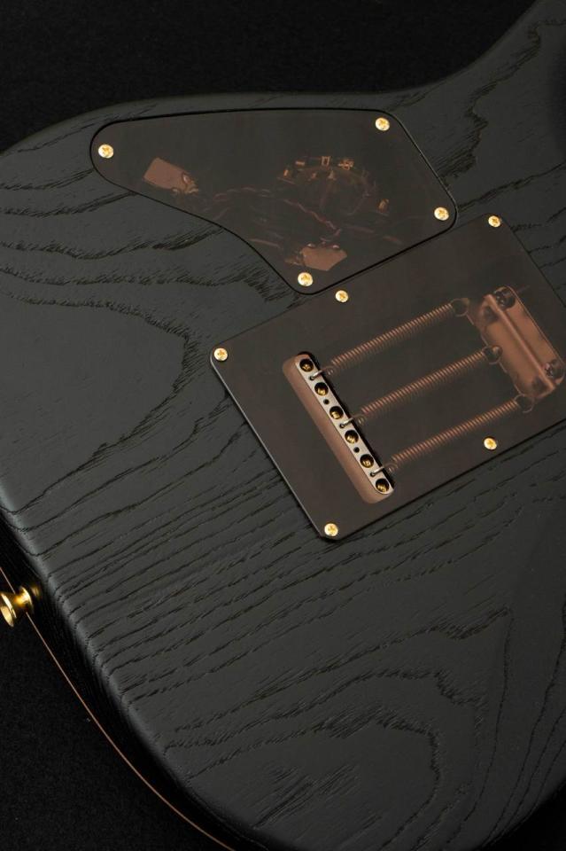 ボディバックには良い杢目で選定を行ったアッシュ材を採用。アッシュの持つ特徴的な杢目に沿って凹凸加工を施しブラックのマット塗装となっております。