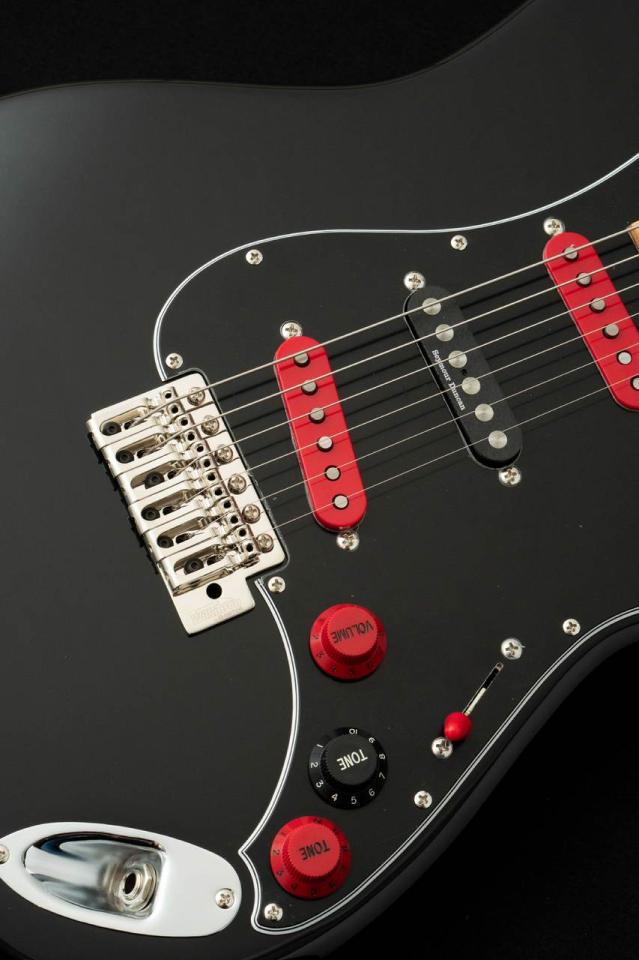 Controls : Pickup select 5-way switch (1: neck|2: neck & bridge pararel|3: middle|4: middle & bridge series|5: bridge)、Master volume(500k-A)、Tone(黒: 250K-A 473) Pickup select 5-way switchが〈1|2|3〉の位置にある場合用のトーン、Tone(赤: 500k-A 223)Pickup select 5-way switchが〈4|5〉の位置にある場合用のトーン