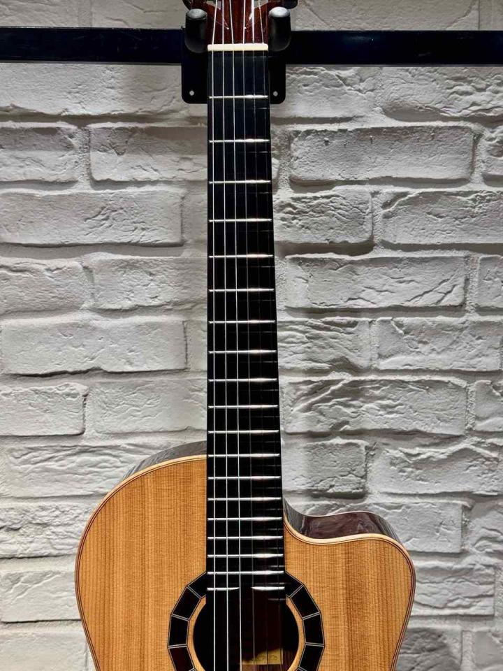 フルサイズボディー/カッタウェイ仕様のクラシック・ギター。ナット幅は48mmで指板には緩やかなラジアスが施されています