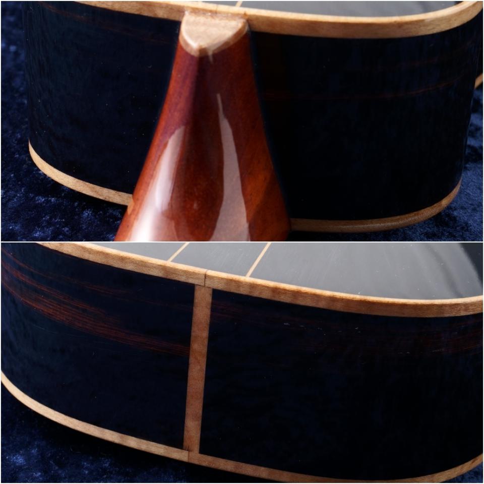 サイド&バックには言わずとしれた希少材であるブラジリアンローズウッド、ハカランダを使用。