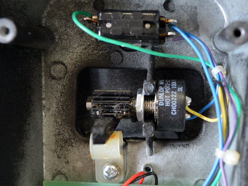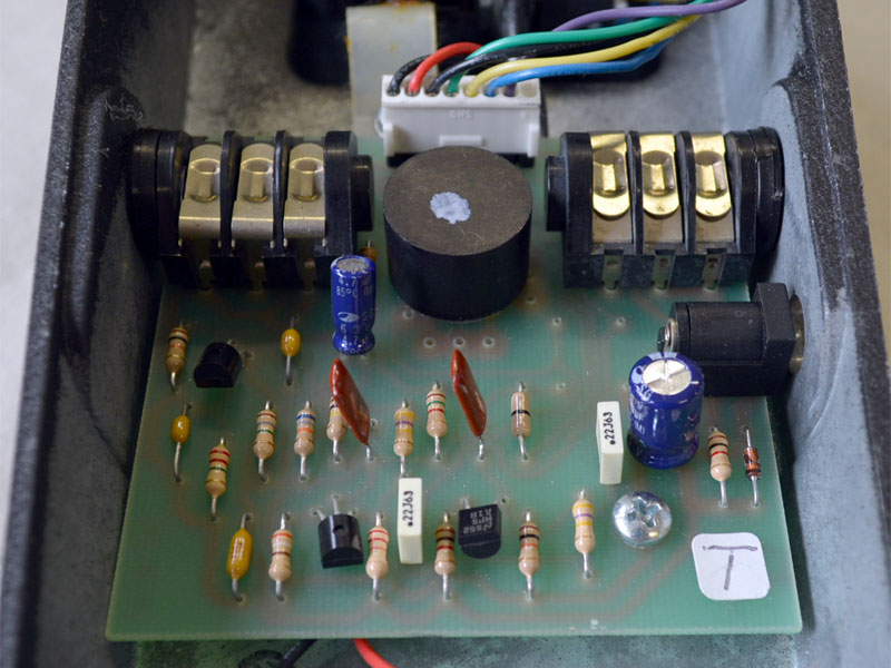 このペダルの状態は少し古いモデルになりますので、打ち傷やペイントの剥がれ等はございますが、機能面は問題もなく、スムーズなペダルストロークを楽しめます。006Pの9V電池で作動しますがボディ・サイドにACアダプターのジャックも付いているので、パワーサプライからの電源供給も可能です。