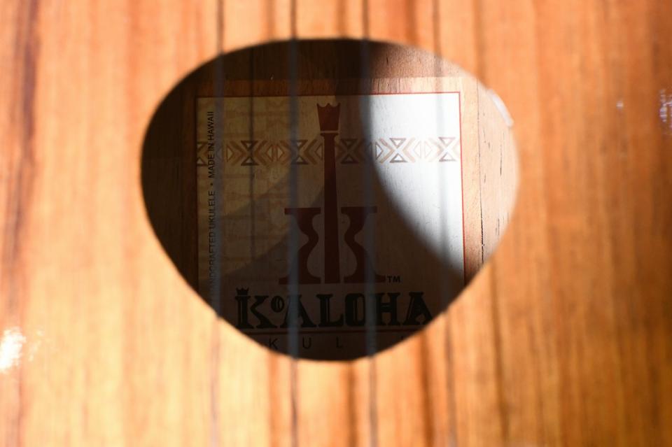 こちらのモデルはボディだけではなく、指板やブリッジにもハワイアンコアを使用。