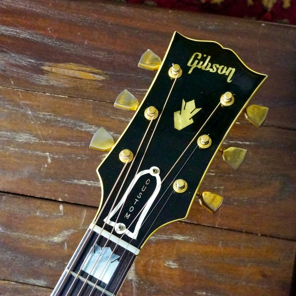 さらに、インレイ入りのマスタッシュ・ブリッジベースに、この年代ならではの特徴と言えるアジャスタブル・ブリッジ/ナイロン・サドルのABR-1を搭載。ヘッド裏のスティンガー、ピックガードやバインディングの質感も相まって、後年の個体と比較しても際立ったゴージャス感持った個体です。