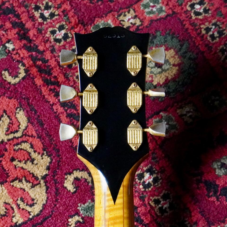 ネックのセット部のバインディング修正跡有り。ヘッド・トップのナット脇にタッチアップ跡、指板の一部に接着剤の跡が見られますが、一見すると分からない程度で綺麗な仕上がりです。