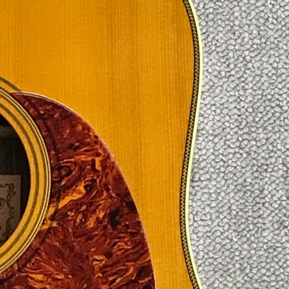戦前D-28型のイメージで力木の形状がこの頃のいつもの百瀬さんと違います。 サウンドホールから覗けばわかる人にはすぐわかるGEと同じような形状です。 GEと言えば野太い6弦の厚みが持ち味ですが、百瀬さんは全く求めていないニュアンスなので、そこはすっきりさせつつ、アディロンの味わいが太く強い音で、ヘッドウェイの硬質な押し出し感が、体に伝わってきます。 HD-701のキャラクターが色濃く感じられる音色です。